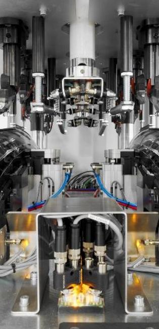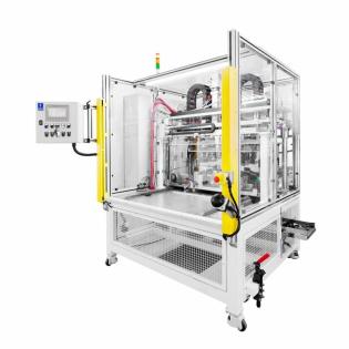 Die Maschine ist vor allem für das Entfernen von Rohrmaterialzugaben der Lampen konzipiert, die sich während des Gießprozesses in den Eingusskanälen der Form gebildet haben. Zum Schneiden werden teflonbeschichtete Messer eingesetzt, die auf hohe Temperaturen erhitzt werden. Die Maschine ist für einen automatischen Zyklus in einer Roboterzelle ausgelegt.