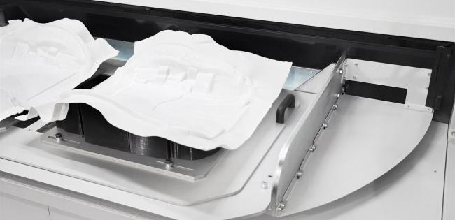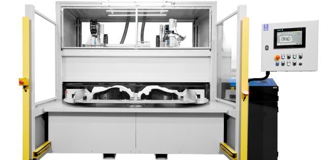 Urządzenie służy do precyzyjnego wycinania otworów w poliestrowych fleezach (elementach usztywniających piankę w fotelach samochodowych). Maszyna stanowi alternatywę dla tradycyjnych pras, co znacząco zwiększa elastyczność produkcji.