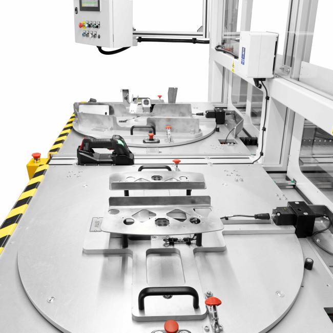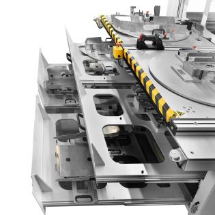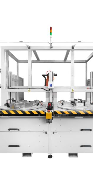 Po zakończeniu aplikacji zasuwa otwiera się, a szuflada powraca do operatora. Następuje kontrola wizualna oraz montaż komponentów dodatkowych (np. mat grzewczych). Na tym etapie operator może zwolnić blokadę stołu, aby swobodnie obracać detalem. Dzięki zastosowaniu dwóch szuflad, proces załadunku i klejenia odbywa się naprzemiennie, co eliminuje przestoje i optymalizuje czas cyklu.