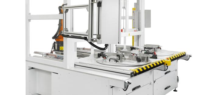 System transportu oparto na dwóch pneumatycznych szufladach, które separują strefę pracy człowieka od obszaru zrobotyzowanego. Zaopatrzenie w klej realizowane jest metodą grawitacyjną dzięki automatycznemu podnośnikowi, który unosi zbiorniki z poziomu posadzki na wysokość roboczą. Stacja posiada również zintegrowany system płukania pistoletu wodą oraz odpływ do kondensatu i pozostałości procesowych.