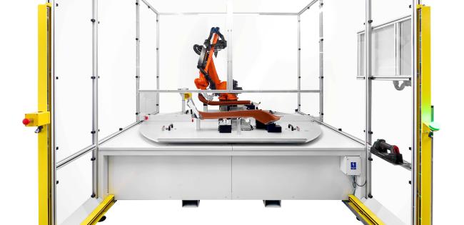 Sercem stacji jest dwupozycyjny stół obrotowy, który umożliwia pracę w trybie ciągłym. Podczas, gdy robot KUKA KR 8 R2010-2 realizuje proces cięcia na jednym stanowisku, operator może bezpiecznie rozładować gotowy detal i przygotować kolejny na drugim gnieździe.